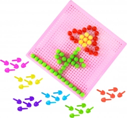 Il mosaico creativo con piolini farà felici tutti i piccoli creatori. I bambini possono comporre immagini seguendo la fantasia e sviluppare motricità fine e pazienza. La confezione contiene 210 piolini in 6 colori e una pratica base traforata.
