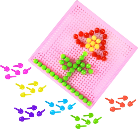 Il mosaico è ideale a casa e all’asilo: la solida base traforata mantiene i piolini in posizione e i diversi colori incoraggiano ad apprendere colori e forme giocando. Un’ottima idea regalo per bambini in età prescolare.