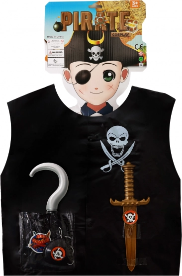 Gilet da pirata per il carnevale per bambini è un accessorio ideale per tutti i piccoli avventurieri! Include un pugnale di plastica, un gancio e un mantello che faranno felice ogni piccolo pirata.