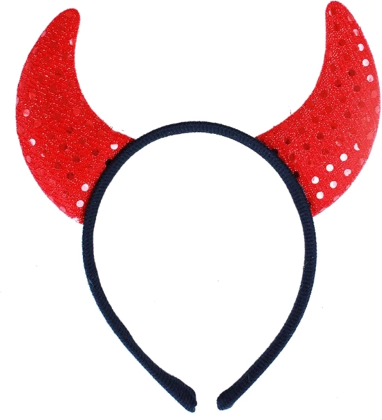 Corna rosse con paillettes su un cerchietto nero per un look diavolesco deciso in un attimo: l’accessorio ideale per feste e carnevale.