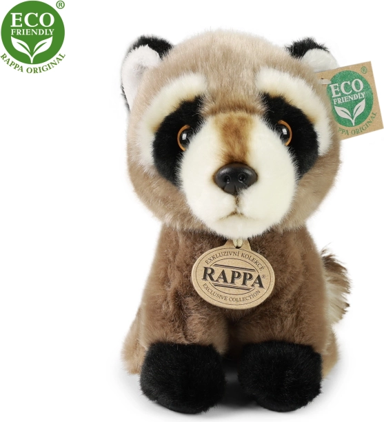 Bello procione di peluche di dimensioni 18 cm, realizzato in peluche di alta qualite0. Questo prodotto fa parte di una collezione esclusiva di giocattoli di peluche eco-friendly. Imbottitura ecologica da bottiglie PET riciclate garantisce il rispetto per l'ambiente.
