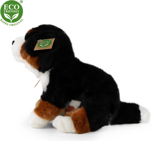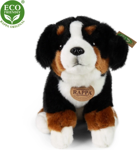Morbido peluche Bovaro del Bernese da 25 cm di RAPPA che farà felici bambini e collezionisti. Offre finitura realistica, lavorazione artigianale e imbottitura ECO‑FRIENDLY da bottiglie PET riciclate. Adatto da 0+.