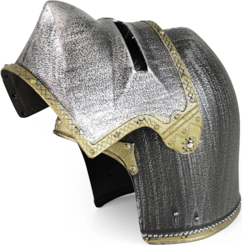 Elmo esclusivo per veri cavalieri con visiera apribile! Questo pezzo fantastico è l'accessorio perfetto per un costume da cavaliere a una festa in maschera. Realizzato in PVC. AVVISO: Questo giocattolo non offre protezione.