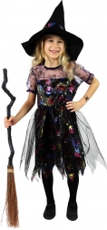 Regala alla piccola strega un travestimento perfetto che spicca in ogni festa. L’abito leggero e piacevole nei toni nero‑viola è decorato con variopinti motivi di Halloween, che conferiscono al costume un aspetto giocoso e magico. Nella confezione è incluso un cappello a punta coordinato che completa il classico stile da strega.