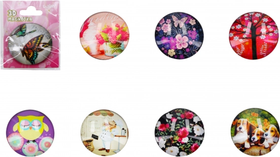 Scoprite la decorazione unica per il vostro ambiente con i magneti 3D in vetro. Queste otto varietà offrono una profondità straordinaria e una rappresentazione realistica.