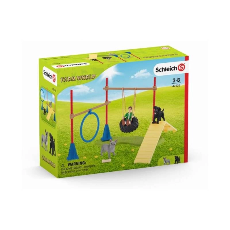 Scopri un mondo di fantasia con il set di gioco Schleich Farm World parco giochi per cani, che sviluppa creatività, motricità fine e gioco di ruolo per bambini dai 3 anni. Elementi colorati, figurine dettagliate e un vario percorso a ostacoli offrono infinite possibilità di gioco e di allenamento per i cagnolini.