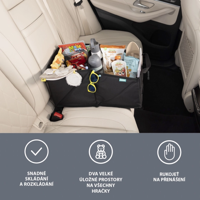 L’organizer per auto ZOPA, pratico e salvaspazio, è l’aiuto ideale per viaggiare con i bambini. È progettato per offrire perfette possibilità di archiviazione. Si ripiega facilmente, non occupa molto spazio e potete metterlo in valigia o nel bagaglio a mano. Le sue due maniglie garantiscono un trasporto comodo e semplice.