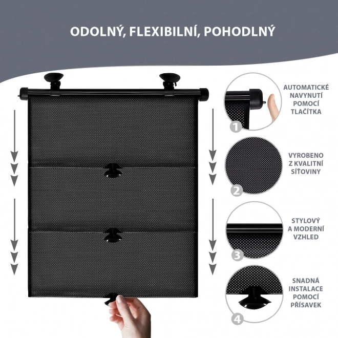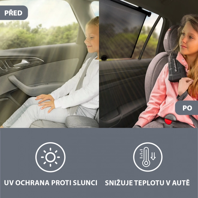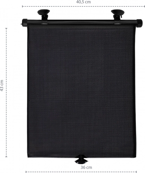 La tenda parasole avvolgibile è un pratico accessorio per i viaggi in auto. L’avvolgimento è semplice: basta premere un pulsante. Grazie alle ventose, la tenda rimane saldamente in posizione senza spostarsi. Protegge il bambino e gli interni dall’esposizione indesiderata ai raggi solari.
