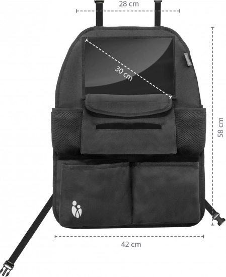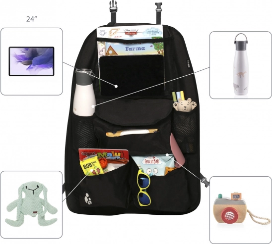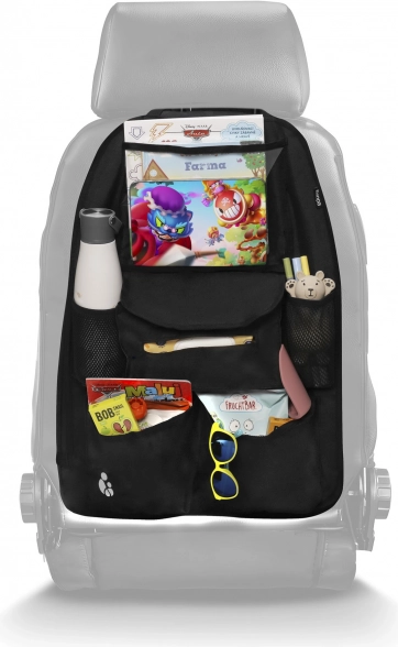 Rendi il viaggio in auto più piacevole con questo organizer progettato per il massimo comfort e ordine. Include una tasca protettiva per tablet, compatibile con tablet fino a 24 cm, e permette ai tuoi bambini di guardare i cartoni animati preferiti durante il viaggio.