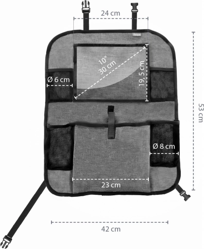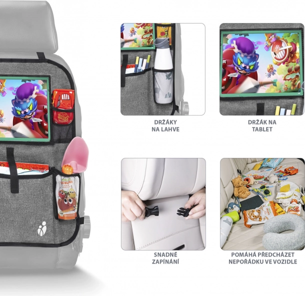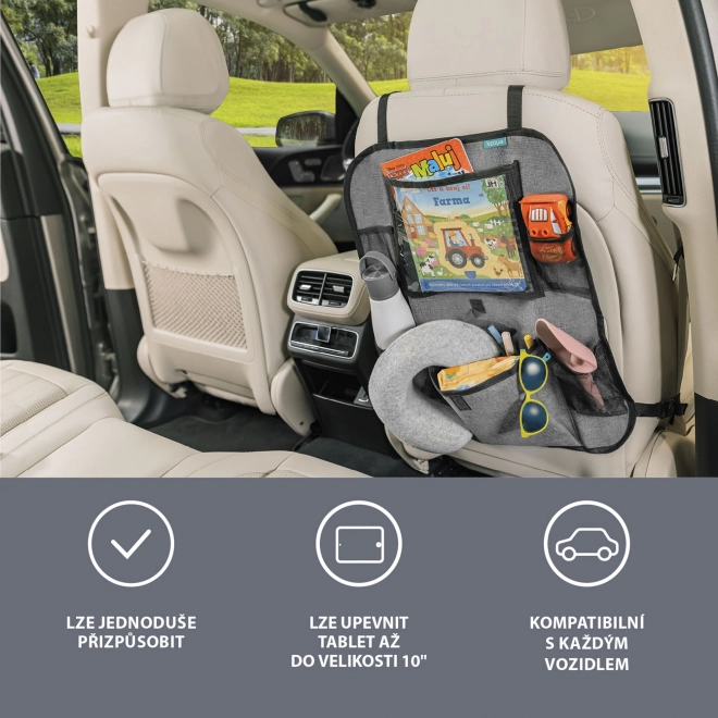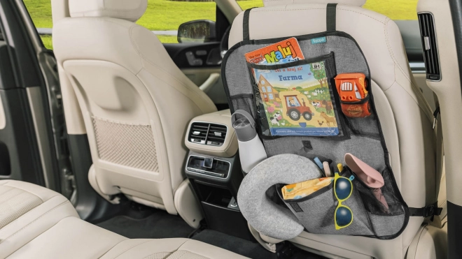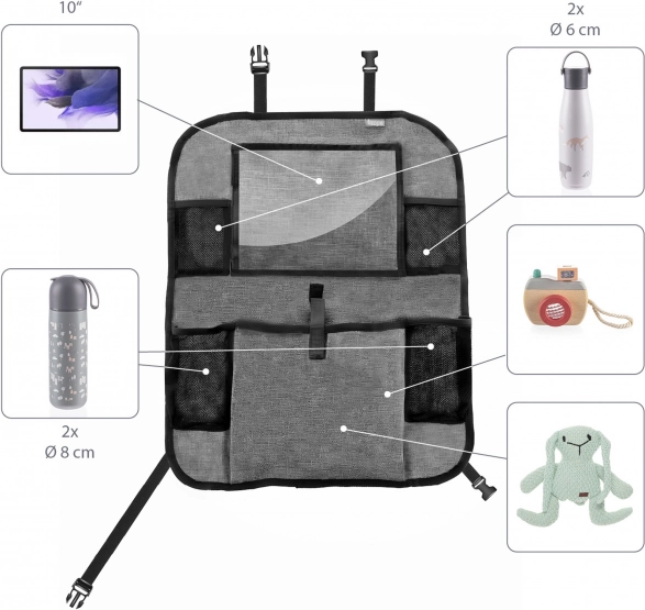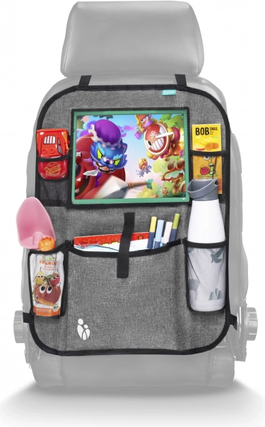 Pratico organizer da sedile con tasca per tablet, il compagno perfetto per ogni viaggio con i bambini.