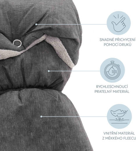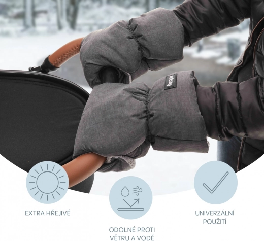 Cercate una soluzione pratica per avere sempre le mani calde durante le passeggiate invernali? Questi guanti universali per passeggino si fissano facilmente con i bottoni a pressione e proteggono in modo affidabile da vento e umidità. Il pile interno è estremamente piacevole al tatto e garantisce calore extra per tutto il periodo d'uso.