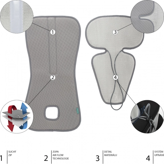 I rivestimenti Zopa BREEZE sono stati creati sulla base delle richieste dei clienti. Volevano un inserto estivo non solo traspirante, ma anche capace di adattarsi al seggiolino specifico senza limitare l’uso di alcun dispositivo di sicurezza.