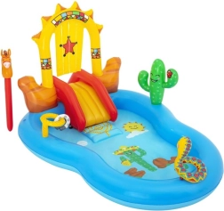 Goditi l’estate al massimo con il centro acquatico a tema Bestway Wild West. Design colorato, struttura sicura e accessori ingegnosi garantiscono ore di divertimento attivo all’aria aperta. L’irrigatore integrato si collega direttamente al tubo da giardino e lo cuscino gonfiabile sul fondo assicura uno scivolamento confortevole.