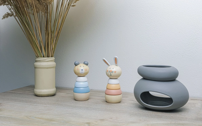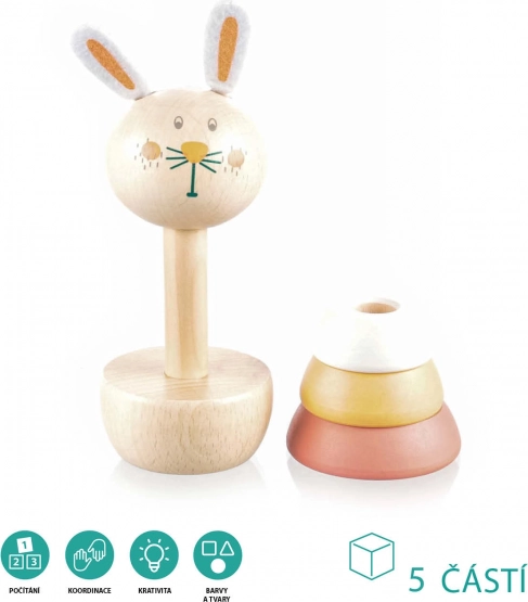 Intrattieni il tuo bambino per ore con questo stupendo giocattolo a incastro a forma di coniglietto. I bambini si divertiranno a giocare con gli anelli di legno che possono essere smontati e riassemblati. Il design adorabile del coniglietto cattura la loro attenzione, promuovendo lo sviluppo motorio e il pensiero spaziale attraverso il gioco.