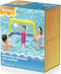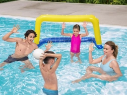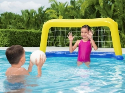 La porta gonfiabile BESTWAY porta in ogni piscina una dose di divertimento sportivo. La realizzazione leggera e sicura in vinile di qualità assicura una lunga durata, mentre la rete in nylon intercetta in modo affidabile ogni tiro. Grazie alle valvole di sicurezza, la porta è pronta al gioco in un attimo e si ripone altrettanto velocemente.