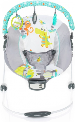 La sdraietta vibrante Happy è proposta in colori più vivaci e contribuisce alla stimolazione dei sensi dei più piccoli fin dalla nascita fino a 9 kg. La apprezzerete nei momenti in cui il vostro bimbo è sveglio e desiderate calmarlo, intrattenerlo e allo stesso tempo coinvolgerlo nella vita familiare. I bambini adorano infatti il piacevole “sedersi” nella sdraietta, soprattutto quando possono dondolarla da soli con i loro movimenti. La combinazione di dondolio, vibrazioni, melodie e giochi farà sì che il vostro angioletto non si annoi.