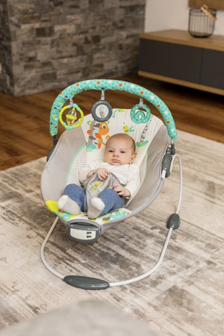 La sdraietta Happy è dotata di un modulo musicale con 5 melodie e 2 livelli di volume. Per calmare il bambino è inoltre dotata di una modalità di vibrazioni piacevoli. È possibile selezionare vibrazioni e melodie in modo indipendente.