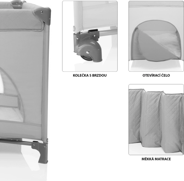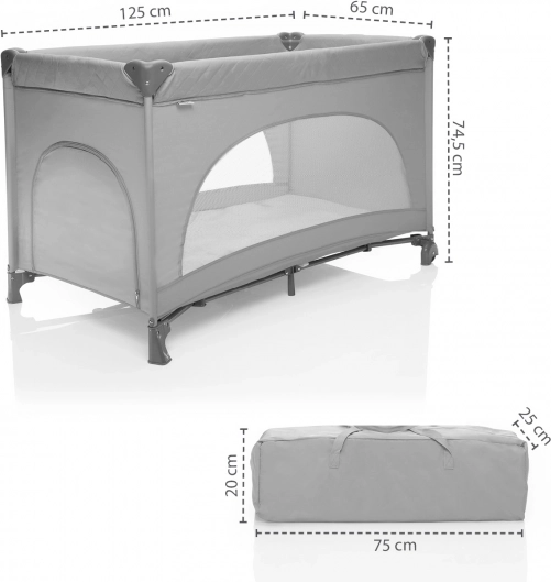 Si piega e si apre facilmente in pochi secondi. La struttura, insieme al materasso, è riposta in una pratica borsa da trasporto. Il lettino Lely può essere spostato facilmente anche da aperto, grazie alle ruote con freno.