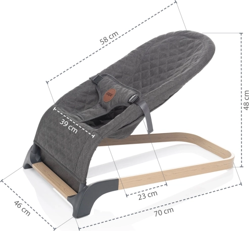 La sdraietta è leggera e facile da trasportare. Grazie al design moderno con decorazione effetto legno, si inserisce facilmente in qualsiasi interno. L’installazione è molto semplice. La sdraietta è conforme alla norma di sicurezza EN 12790.