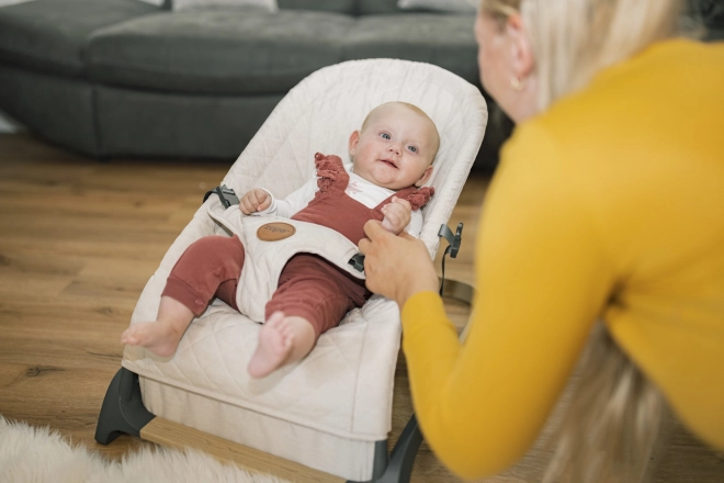 La sdraietta Miura consente al bambino di stare al centro dell’attenzione mentre i genitori possono dedicarsi alle proprie attività o al relax. Le morbide cinture garantiscono la massima sicurezza del bambino nella sdraietta mentre riposa o gioca. Il tessuto robusto con motivo a diamante assicura comfort e al contempo un sostegno adeguato.