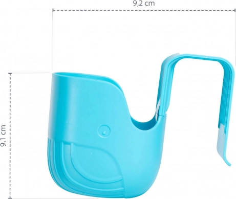 Pratico portabicchieri con gancio. Può essere appeso al passeggino, al seggiolino auto, alla culla e in altri punti (larghezza max 4 cm). Nel supporto è possibile inserire una bottiglietta con diametro massimo di 8 cm.
