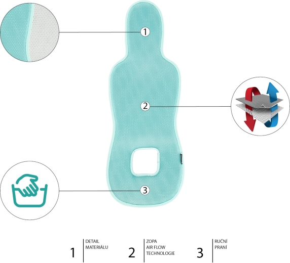 La traspirabilità è garantita dall’esclusiva tecnologia Zopa Air Flow, un tessuto con struttura esagonale 3D che consente il flusso d’aria attraverso l’inserto, tra il seggiolino auto e il bambino.