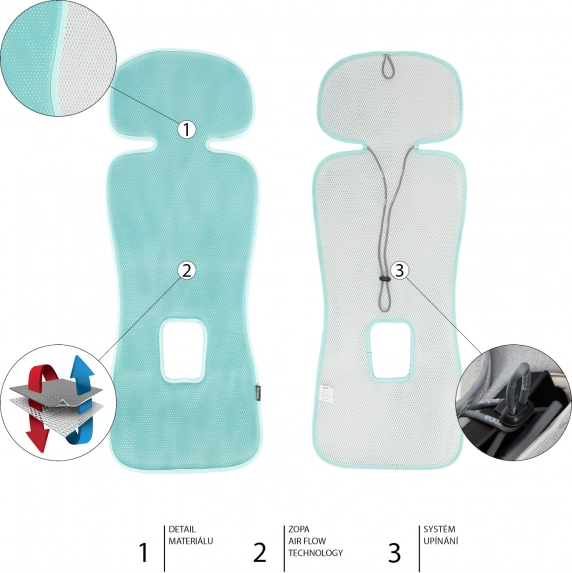 I cuscini Zopa BREEZE sono stati creati sulla base delle richieste dei clienti. Volevano che l’inserto estivo fosse non solo traspirante, ma anche in grado di adattarsi al seggiolino specifico senza limitare l’uso di alcun elemento di sicurezza.