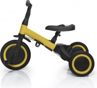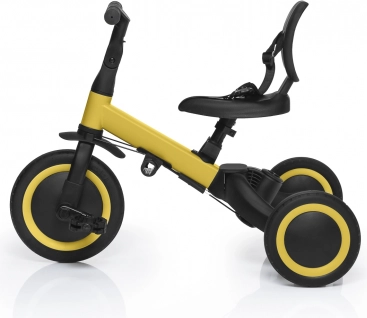 Un solo veicolo copre tre fasi di sviluppo: 18–36 mesi triciclo (con/senza asta di guida), 36–48 mesi balance bike e 48–60 mesi bicicletta.