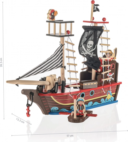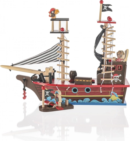 Incorpora figurine di legno e tutti i componenti necessari per iniziare entusiasmanti giochi e racconti di pirati.
