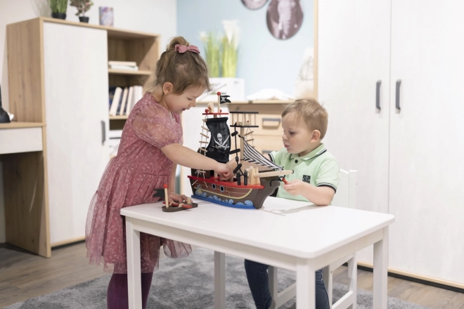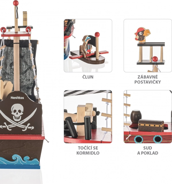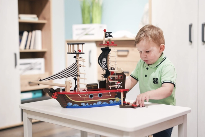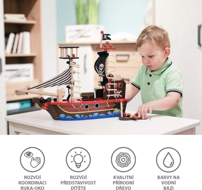 La nave pirata di legno rafforza la motricità fine e lo sviluppo dell'immaginazione, offrendo ore di gioco ispirante per i bambini.