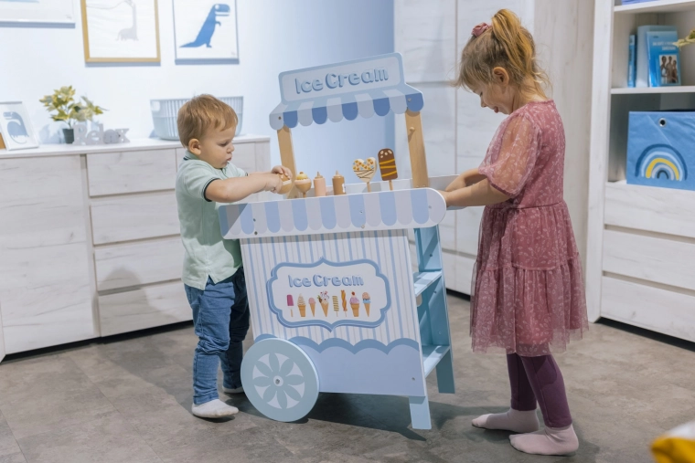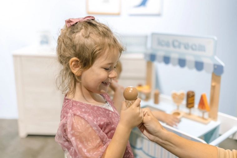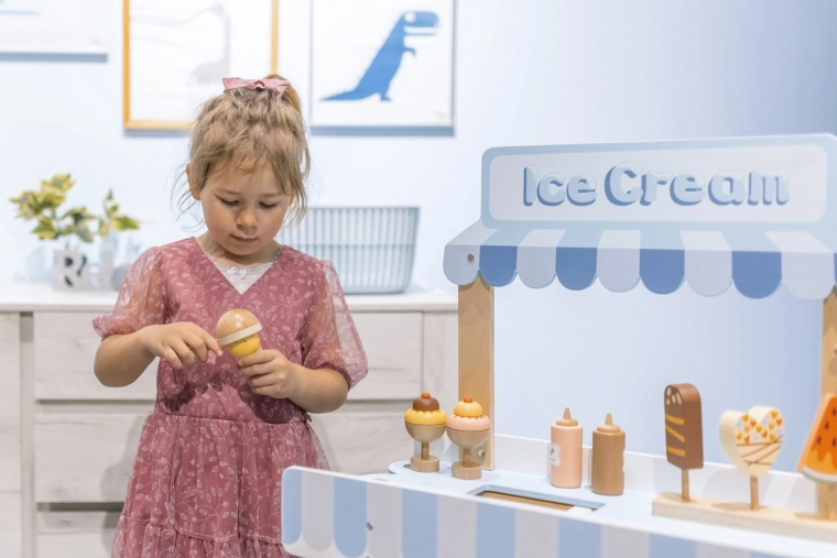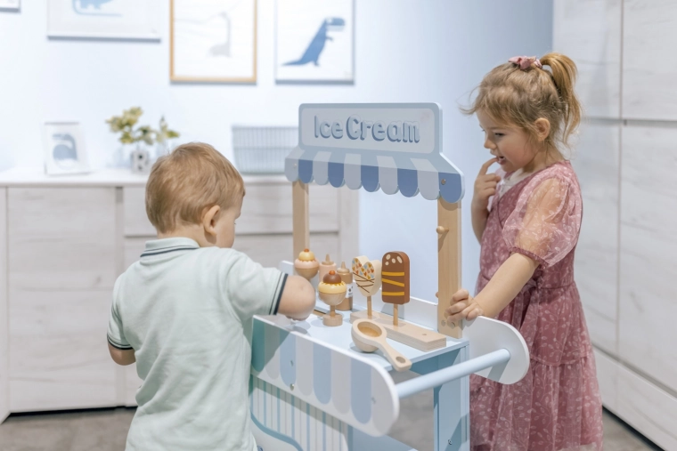 I bambini possono imitare autenticamente il lavoro del gelataio con oggetti di scena realistici.