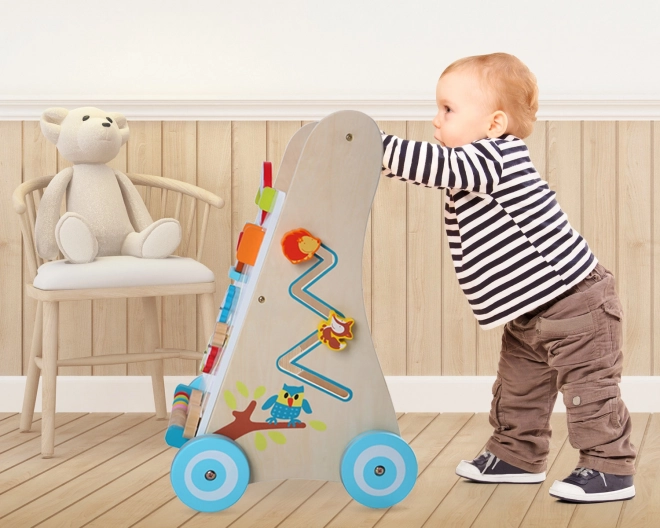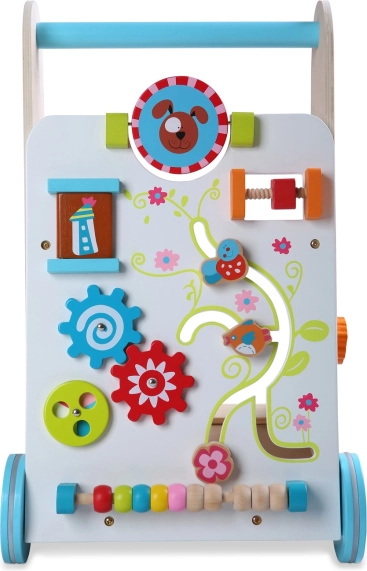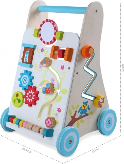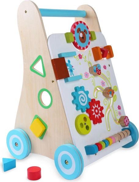 Passo dopo passo nel mondo delle scoperte! Il girello di attività in legno non solo supporta l'apprendimento della camminata, ma è anche dotato di molti elementi che sviluppano la coordinazione occhio-mano. Il tuo bambino vivrà tanto divertimento e allo stesso tempo il gioco sosterrà il suo sviluppo psicomotorio.