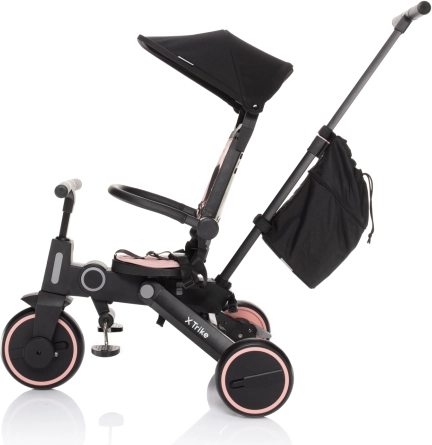 Il triciclo multifunzione X Trike offre fino a 7 modalità d’uso, dal passeggino alla guida autonoma. Grazie alla asta di guida regolabile, ai pedali rimovibili e alla chiusura compatta, è ideale per i viaggi. La sicurezza è garantita da cinture a 5 punti, barra di sicurezza regolabile, tettuccio parasole e freno a pedale.