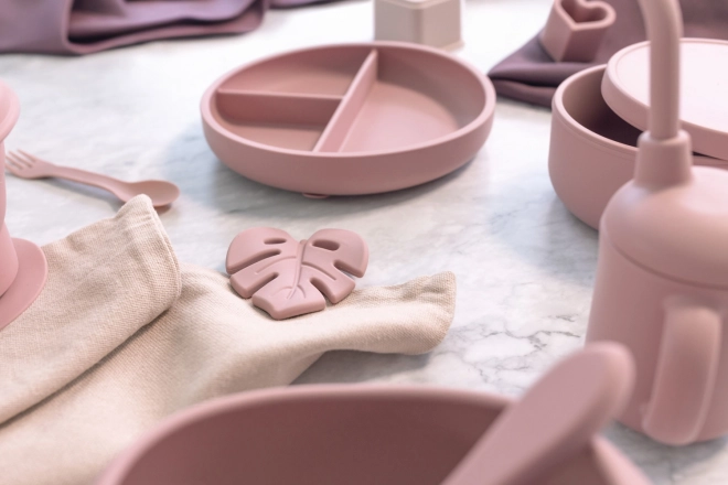 Set di stoviglie in silicone per bambini granchio 19 pezzi rosa scuro