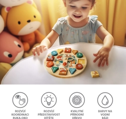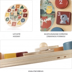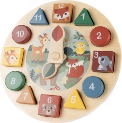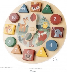 L’orologio attività in legno offre tantissimo apprendimento divertente. Il bambino impara in modo del tutto naturale attraverso il gioco. Questo orologio attività in legno propone diversi tipi di apprendimento: numeri da 1 a 12, animali, forme, colori e le ore. Favorisce lo sviluppo della motricità fine, del pensiero logico e della fantasia.