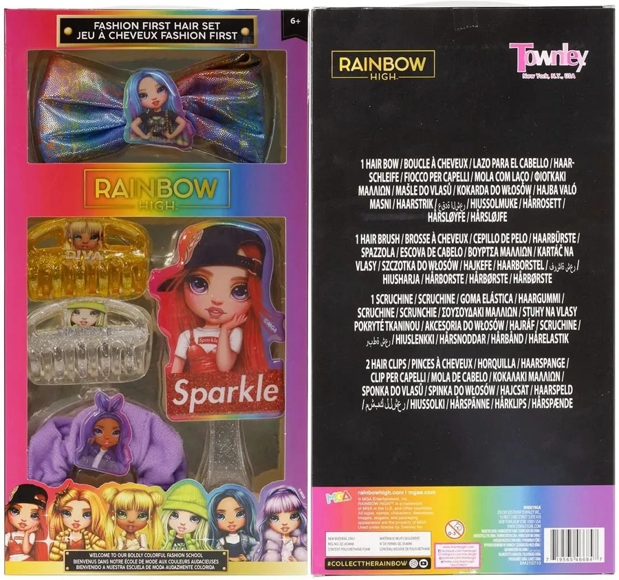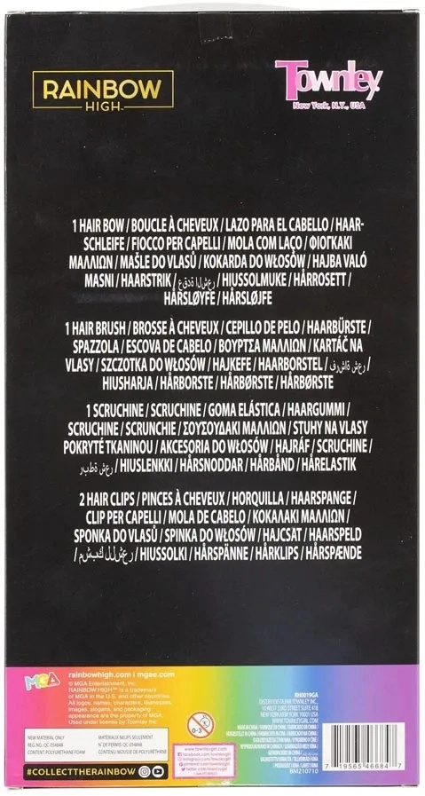 Scopri il divertimento di pettinare e creare styling con l’iconico motivo arcobaleno RAINBOW HIGH. Questo set unisce praticità e look alla moda, per permettere ai bambini di creare acconciature semplici e giocose, a casa e in viaggio.