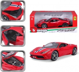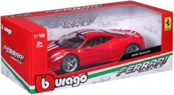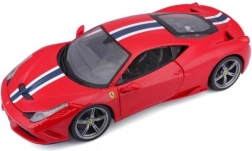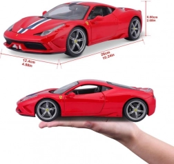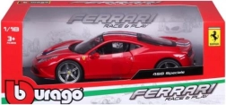 Modello in metallo della serie Bburago 1:18 Ferrari 458 Speciale Ferrari Race&Play, colore rosso.