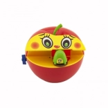 Questo salvadanaio in plastica imita una mela amata ed è ideale per i bambini dai tre anni in su. Grazie al meccanismo a manovella, l'uso è divertente e facile. Dopo aver inserito la moneta, il vermetto la afferra e la porta all'interno della mela, motivando i bambini a risparmiare.