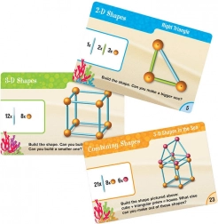 Scopri il mondo della geometria insieme ai tuoi bambini con il set di costruzione di forme geometriche. Questo set include un totale di 129 pezzi, compresi connettori colorati e aste di diverse lunghezze. Arricchito da schede bifacciali illustrate che mostrano modelli di forme finite, il numero di pezzi necessari e le combinazioni per creare forme 2D e 3D come cerchi, cubi e prismi rettangolari.