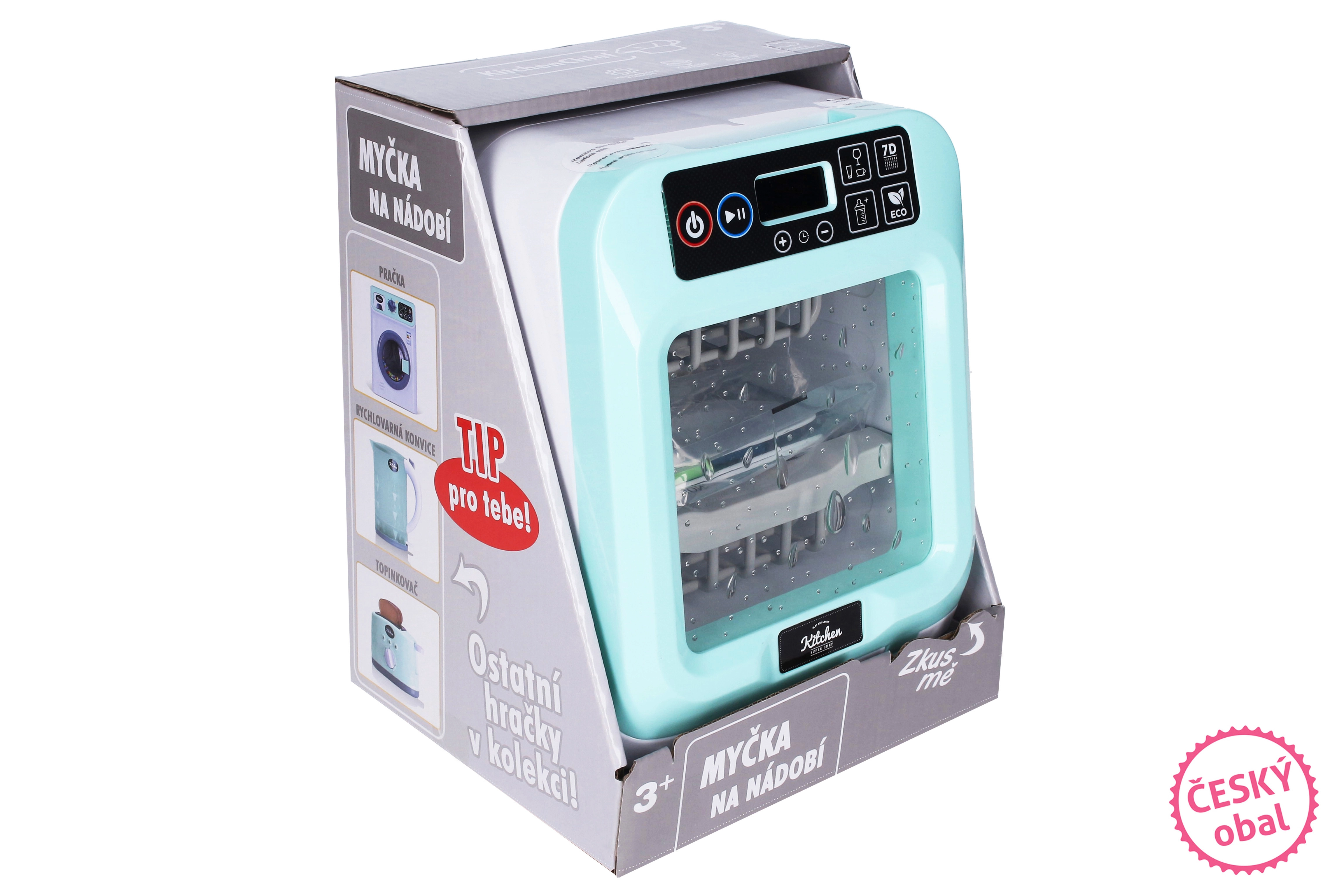 Divertente lavastoviglie per bambini che trasforma le pulizie in un gioco! Offre effetti luminosi e sonori, 4 programmi di lavaggio e la possibilità di impostare il tempo. Ideale per piccoli aiutanti dai 3 anni: basta inserire i piatti, scegliere il programma e il divertimento inizia.