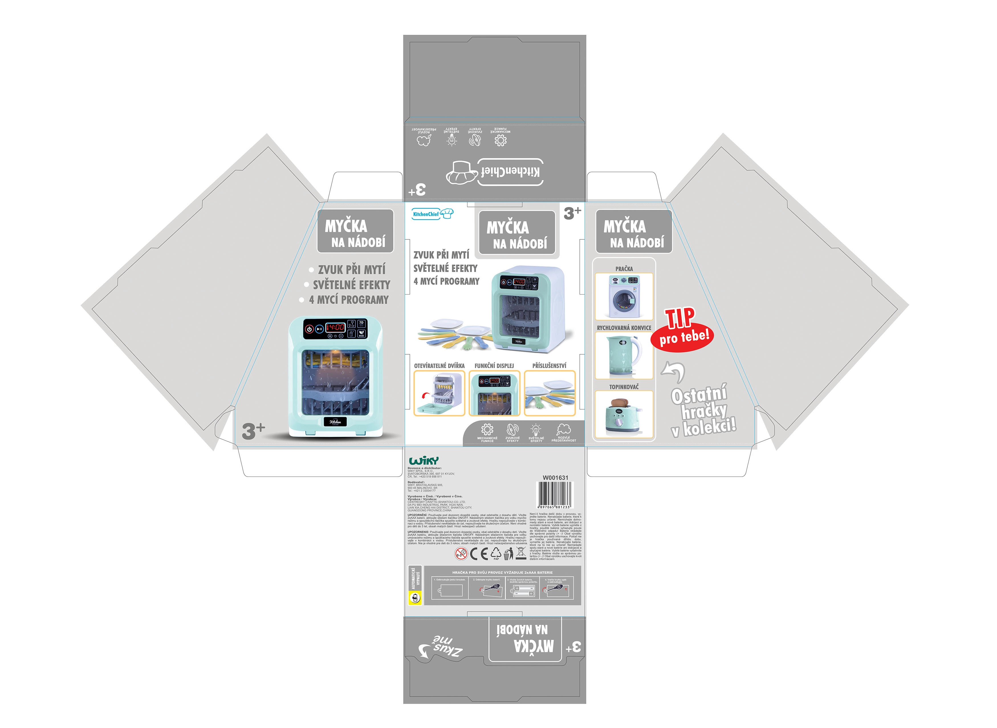 Scegli tra 4 programmi di lavaggio oppure imposta un tempo personalizzato secondo le necessità. La lavastoviglie è pronta all’uso subito dopo l’apertura: 2× batterie AAA incluse. Un regalo perfetto che diverte e insegna l’ordine in cucina.