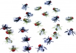 Queste piccole mosche di gomma sono la decorazione perfetta per la tua festa di Halloween e aggiungeranno un tocco di atmosfera spettrale.
