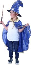 Questo set esclusivo da strega garantisce che non passerai inosservato a nessun evento! Il mantello blu è decorato con orlo dorato e stelle, che aggiungono un tocco di efficacia. Il cappello si abbina perfettamente al mantello e completa l'impressione complessiva. Ideale per le celebrazioni di Halloween o qualsiasi carnevale a tema.