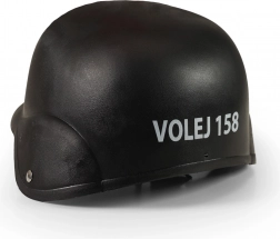 - mitraglietta, gilet protettivo con scritte in ceco, granata, ricetrasmittente, orologio, distintivo, occhiali, casco