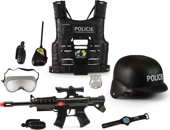 Diventa l'eroe della squadra d'intervento! Questo set di polizia per bambini include un gilet da polizia con scritte in ceco, una mitraglietta di plastica e ricchi accessori per il gioco di ruolo – casco, granata, ricetrasmittente, orologio, distintivo e occhiali. La plastica leggera e il design sicuro garantiscono divertimento senza pensieri in casa e all'aperto.