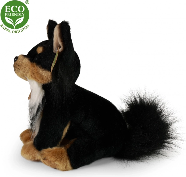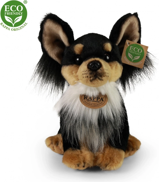 Questo chihuahua di peluche seduto, lungo circa 24 cm, è morbido al tatto e sicuro anche per i bimbi più piccoli. L'imbottitura in bottiglie PET riciclate è testata, di qualità e al tatto indistinguibile da un'imbottitura tradizionale. Un'ottima scelta per i genitori che cercano un giocattolo sicuro, di qualità ed ecologico.