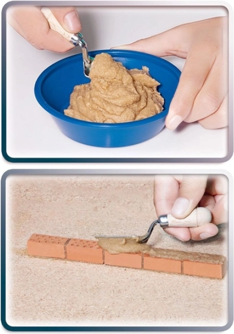 Questo set unico ti permette di costruire una casa o un castello come un vero costruttore. È sufficiente mescolare la malta, unire i mattoni e iniziare a costruire. Una volta completato, puoi smontare il tuo lavoro, asciugarlo e ricominciare a costruire.