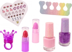 2× smalto per unghie, adesivi per unghie, separadita, pennellino, 2× mini rossetto, anellino con balsamo (corona)