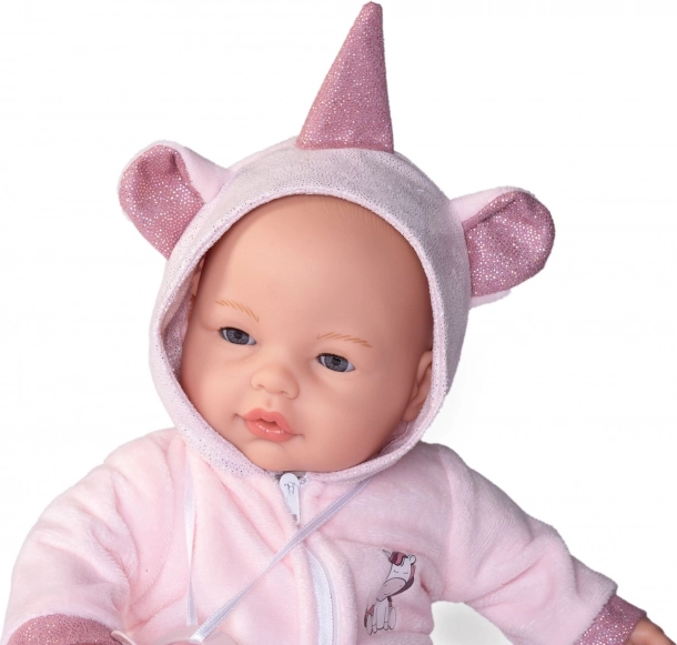 La bambola emette suoni autentici di bambino che piange e dice "mamma", "papà", quando si rimuove il ciuccio.