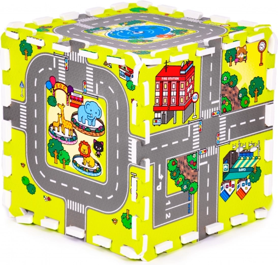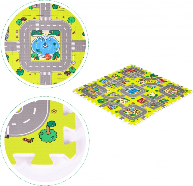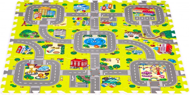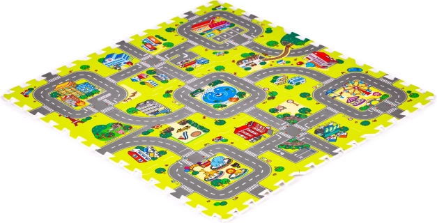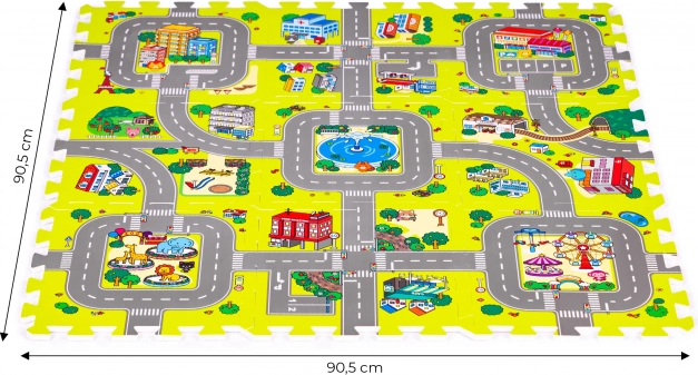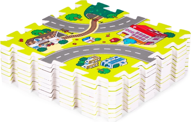 Questo tappetino da gioco in schiuma con motivo colorato di città, strade ed edifici crea uno spazio stimolante per la fantasia, l’apprendimento e lo sviluppo motorio. Offre ai bambini un luogo confortevole e morbido per giocare, gattonare e muovere i primi passi, proteggendo al contempo dal freddo del pavimento e attenuando gli urti in caso di cadute.